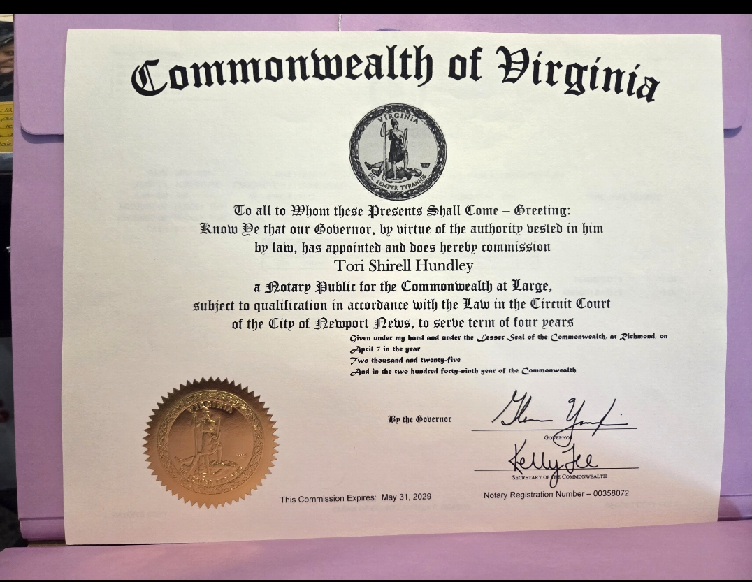 With a strong foundation in the notary services industry, T. Shirell Signing Services, LLC. is a trusted provider of mobile notary solutions. Specializing in loan signing and document notarization, our team brings extensive expertise and a commitment to excellence to every signature we handle. Our background in the field ensures that each client receives professional and reliable service, tailored to meet their specific needs.